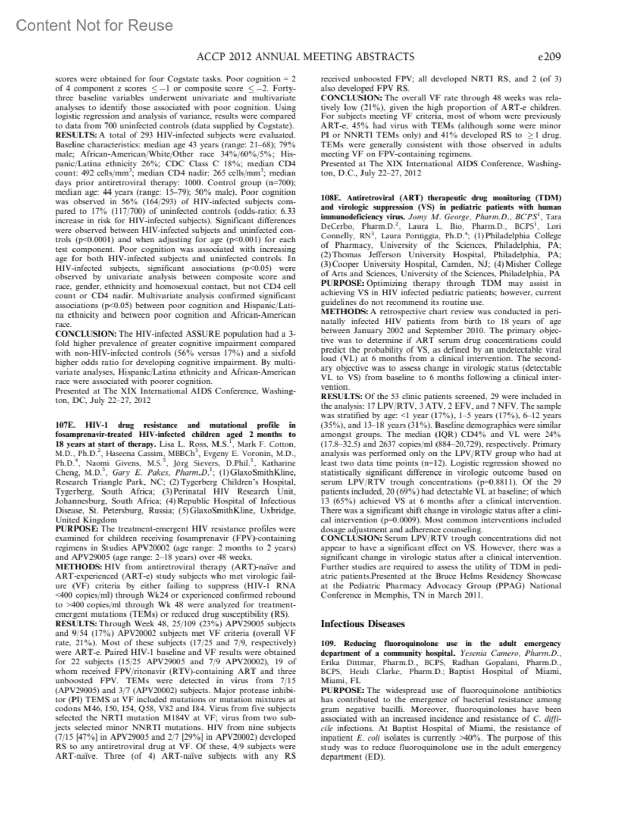 Pharmacotherapy: The Journal Of Human Pharmacology & Drug Therapy 32(10):p e209, October 2012.