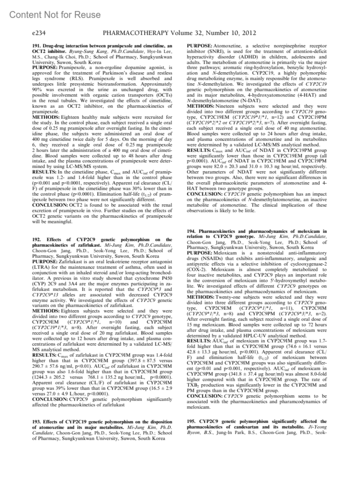 Pharmacotherapy: The Journal Of Human Pharmacology & Drug Therapy 32(10):p e235, October 2012.