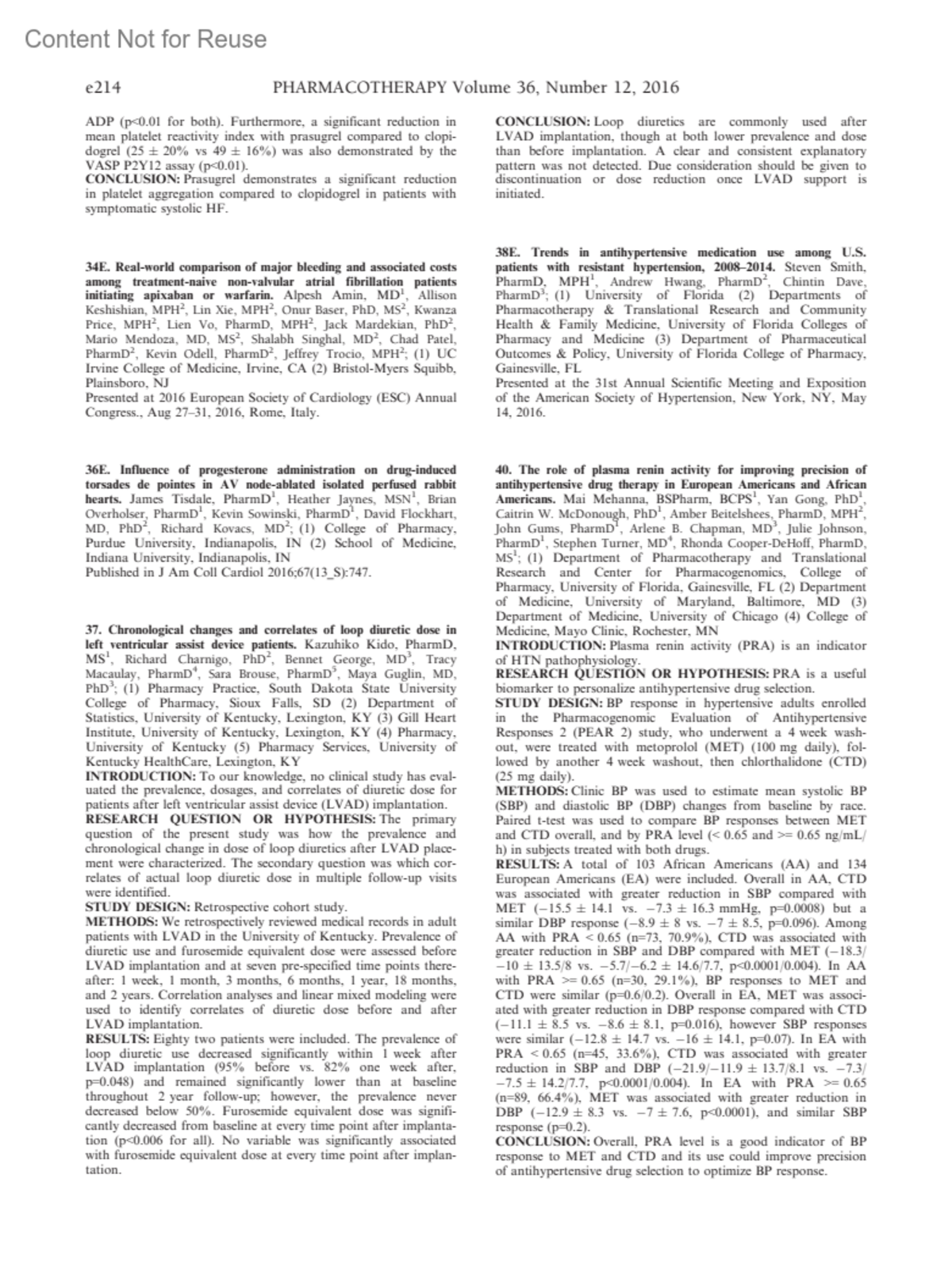 Pharmacotherapy: The Journal Of Human Pharmacology & Drug Therapy 36(12):p e214, December 2016.