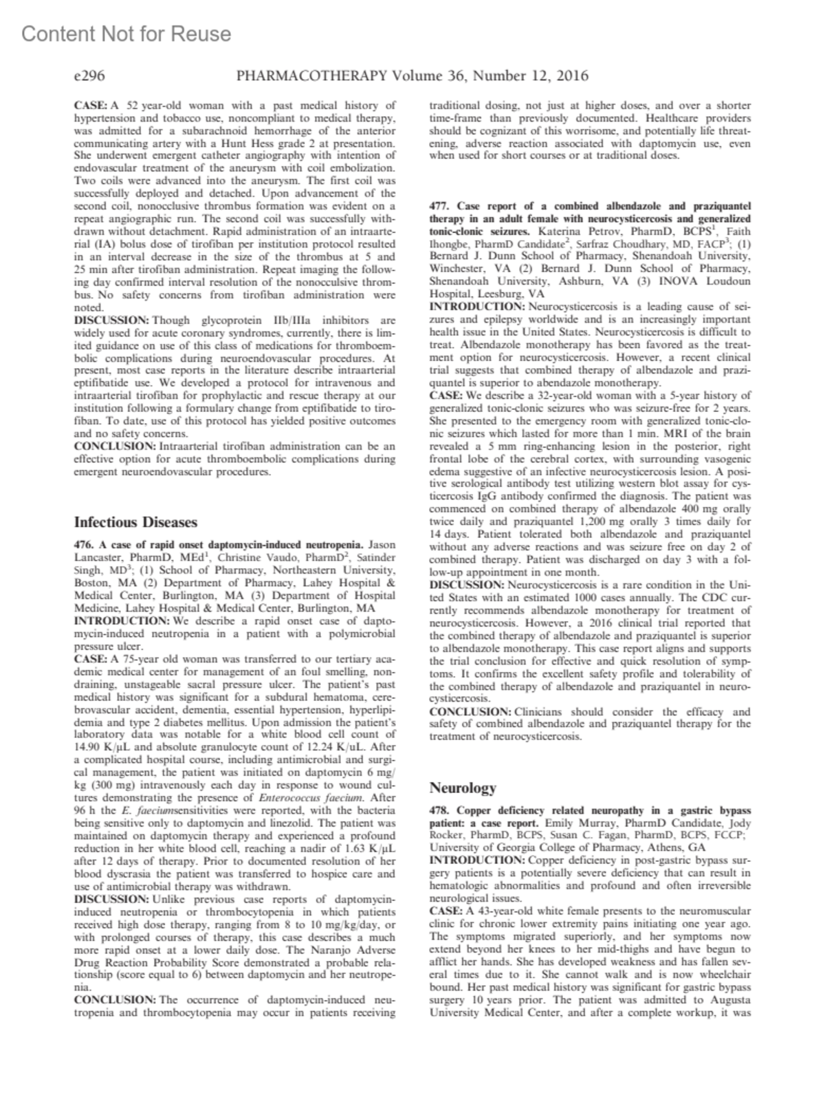 Pharmacotherapy: The Journal Of Human Pharmacology & Drug Therapy 36(12):p e296, December 2016.