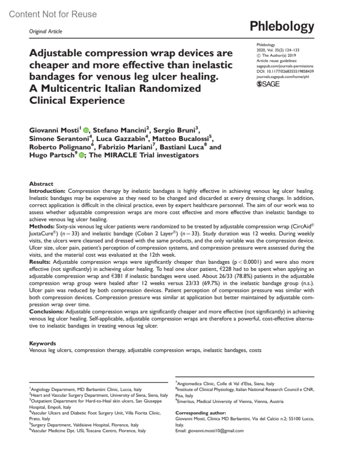Adjustable compression wrap devices are cheaper and more effective than inelastic bandages for venous leg ulcer healing. A Multicentric Italian Randomized Clinical Experience