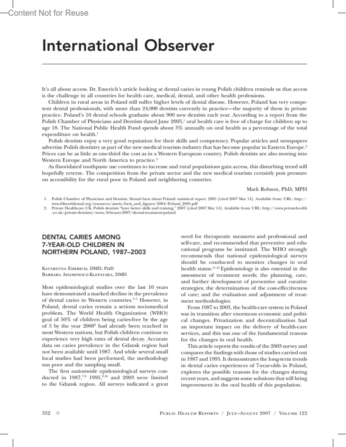 International ObserverRobson, Mark PhD, MPHPublic Health Reports 122(4):p 552, July-August 2007.Copyright © 2007 Association of Schools of Public Health.