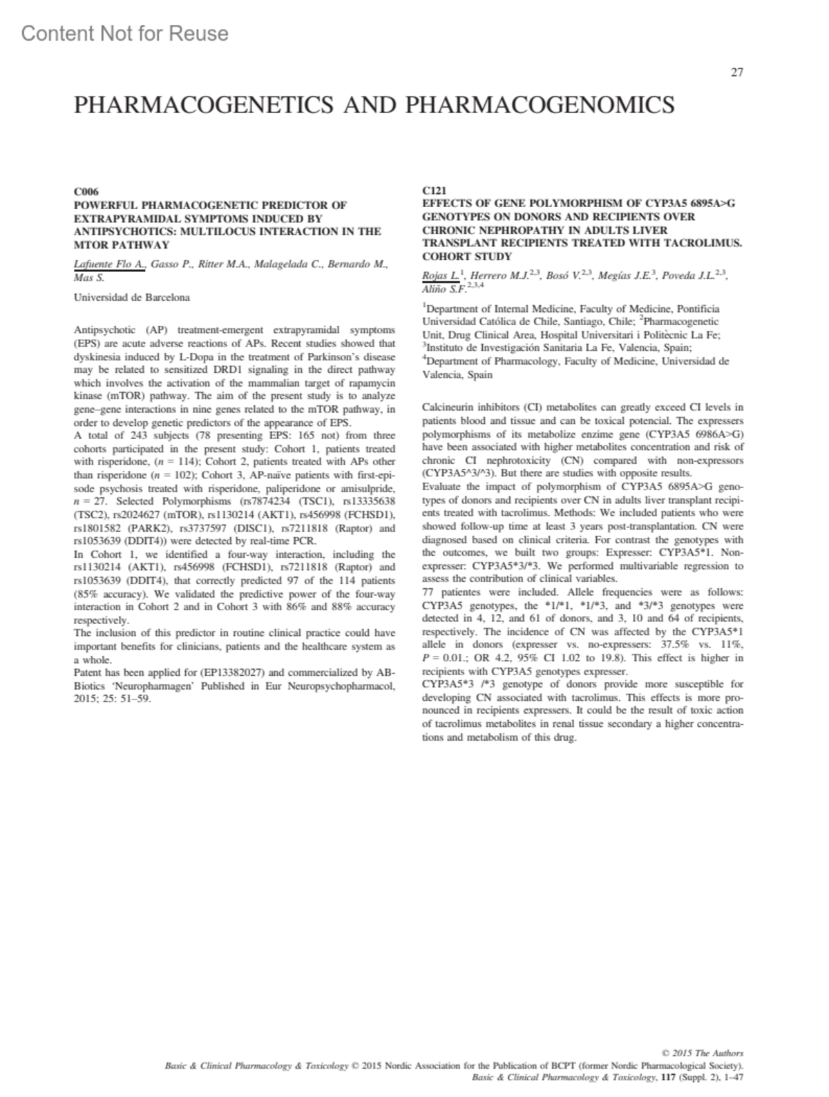 Basic & Clinical Pharmacology & Toxicology 117:p 27, December 2015.