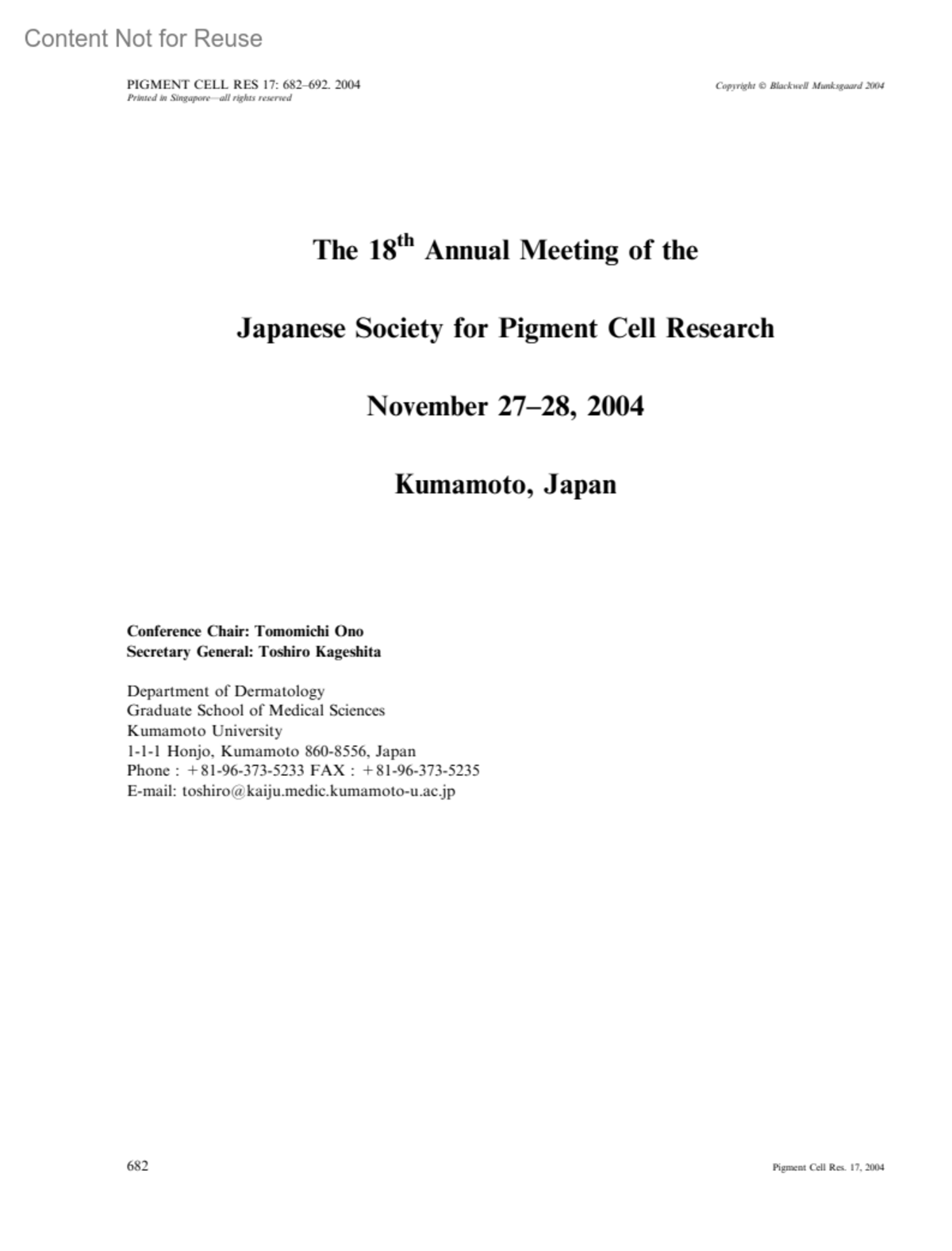 Pigment Cell Research 17(6):p 685-686, December 2004.