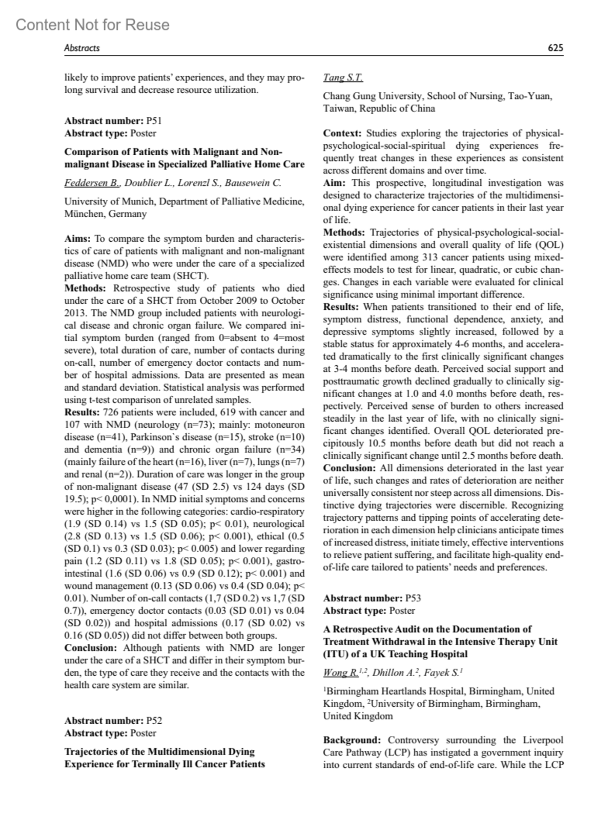Trajectories of the Multidimensional Dying Experience for Terminally Ill Cancer PatientsAbstract number: P52Tang, S. T.Author informationChang Gung University, School of Nursing, Tao-Yuan, Taiwan, Republic of ChinaPalliative Medicine 28(6):p 625, June 2014.Copyright ©2014Sage Publications
