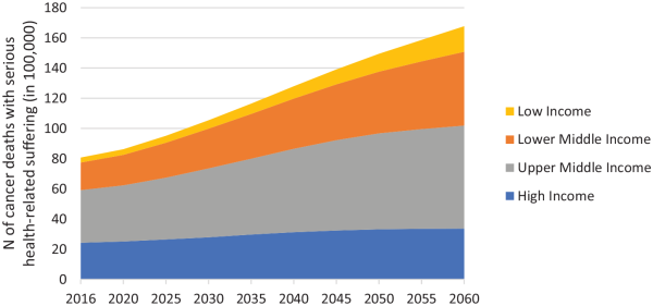 Projections studies estimate that by 2060, almost 50 million people will die each year with serious health-related suffering, and that cancer is the biggest single contributor to the increase in suffering.