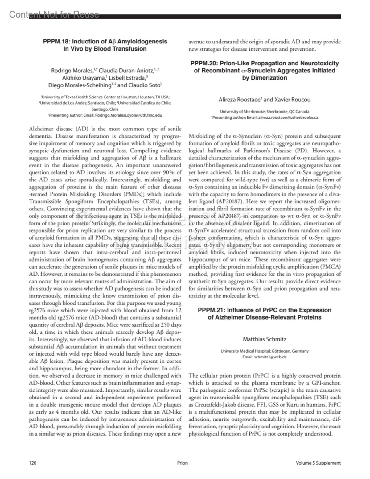 PPPM.21: Influence of PrPC on the Expression of Alzheimer Disease-Relevant ProteinsSchmitz, MatthiasAuthor informationUniversity Medical Hospital; Göttingen, Germany Email: [email protected]Prion 5:p 120-121, April-May-June 2011.Copyright © 2011 Landes Bioscience