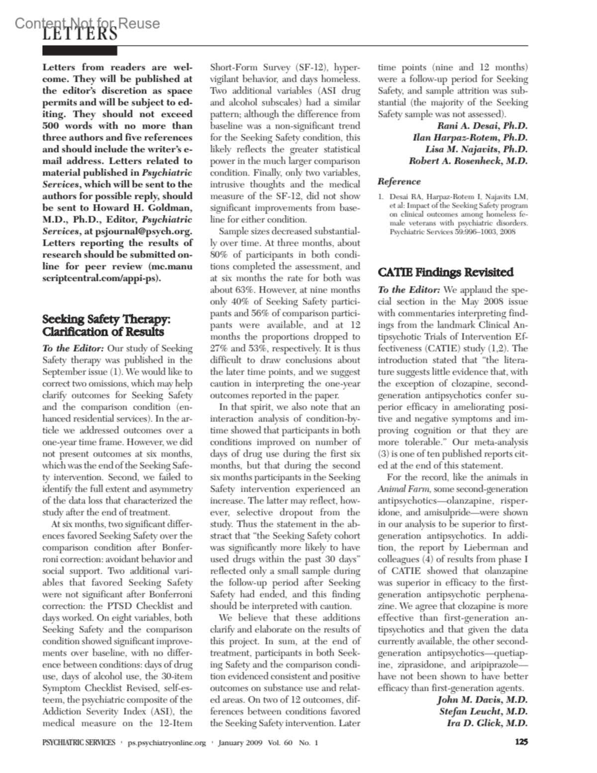 Letters from readers are welcome. They will be published at the editor's discretion as space permits and will be subject to editing. They should not exceed 500 words with no more than three authors and five references and should include the writer's e-mail address. Letters related to material published in Psychiatric Services, which will be sent to the authors for possible reply, should be sent to Howard H. Goldman, M.D., Ph.D., Editor, Psychiatric Services, at [email protected]. Letters reporting the results of research should be submitted on-line for peer review (mc.manuscriptcentral.com/appi-ps).
