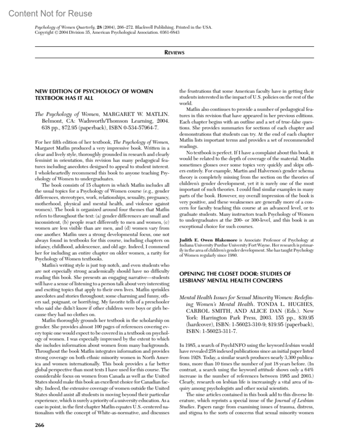 Psychology of Women Quarterly 28(3):p 266, September 2004.