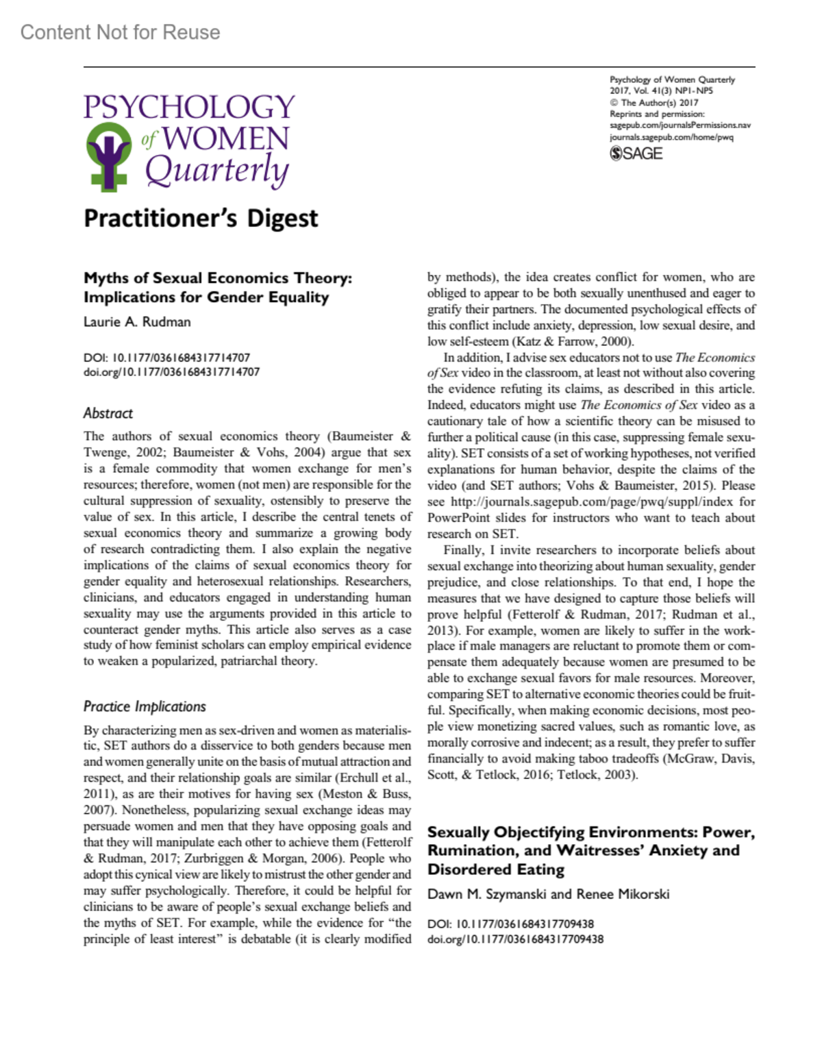 Practitioner’s DigestPsychology of Women Quarterly 41(3):p 1-5, September 2017. | DOI: 10.1177/0361684317726091Copyright © 2017 Sage Publications