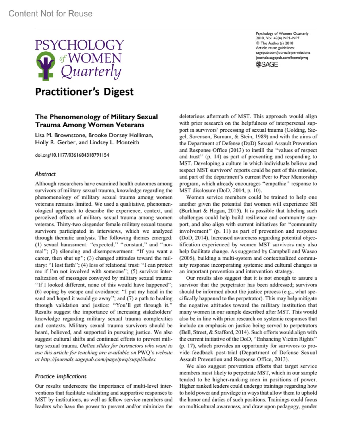 Practitioner’s DigestPsychology of Women Quarterly 42(4):p 1-7, December 2018. | DOI: 10.1177/0361684318813580Copyright © 2018 Sage Publications