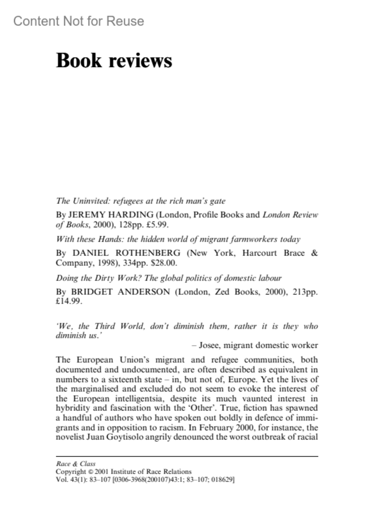 Book ReviewsRace & Class 43(1):p 83-107, July 2001. | DOI: 10.1177/0306396801431006Copyright © 2001 Sage Publications