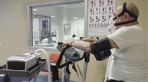 Most patients with CVF have a high prevalence of comorbidities, among which ischaemic cardiac disease is frequent []. The relief of exercise-induced dyspnoea associated with this “mechanical doping” [] might lead patients with unknown cardiac ischaemia to exercise at an intensity higher than their coronary ischaemic threshold. A careful clinical and physiological assessment of the patient is required before submission to this modality of training.