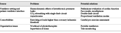 A summary of relevant RCTs on the use of NIV during exercise training is shown in Table 2. Potential problems using NIV in exercise training sessions are shown in Table 3 [].