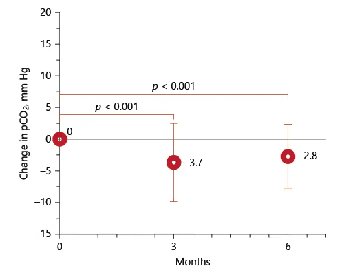 Change of pCO2 at 3 and 6 months.