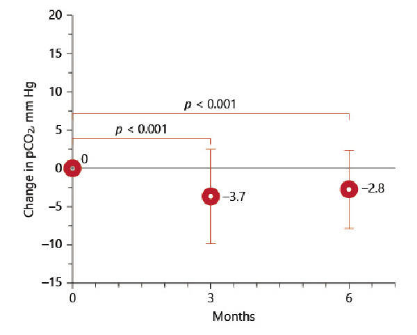 Change of pCO2 at 3 and 6 months.
