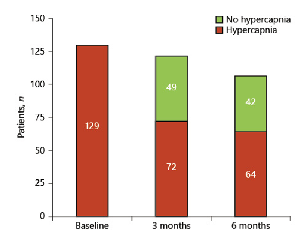 Number of patients with normocapnia at 3 and 6 months from baseline.