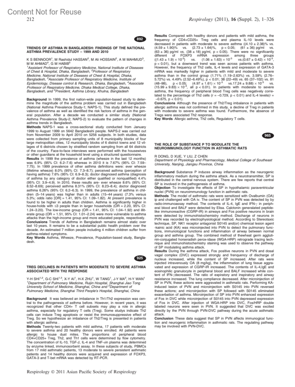 TRENDS OF ASTHMA IN BANGLADESH: FINDINGS OF THE NATIONAL ASTHMA PREVALENCE STUDY - 1999 AND 2010