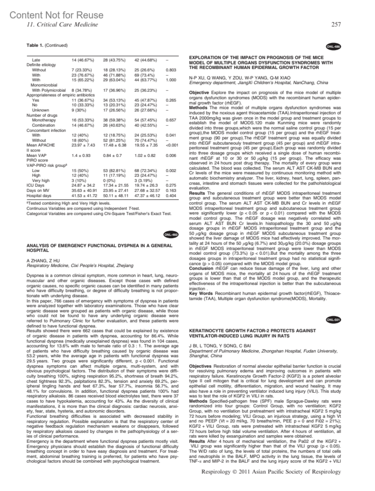 KERATINOCYTE GROWTH FACTOR-2 PROTECTS AGAINST VENTILATOR-INDUCED LUNG INJURY IN RATSONL-501BI, JTONG, LSONG, YBAI, CAuthor informationDepartment of Pulmonary Medicine, Zhongshan Hospital, Fudan University, Shanghai, ChinaRespirology 16:p 257-258, November 2011.Copyright © 2011 Blackwell Publishing Ltd.