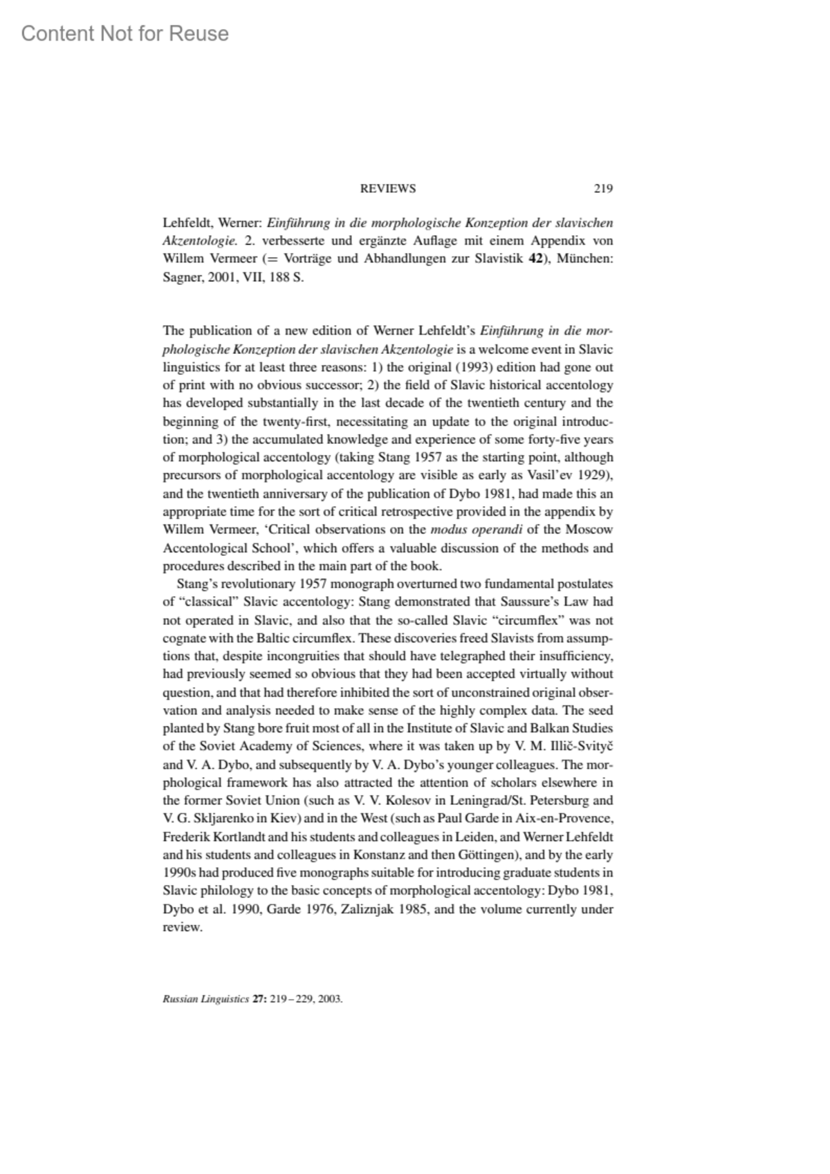 Russian Linguistics 27(2):p 219-229, June 2003.