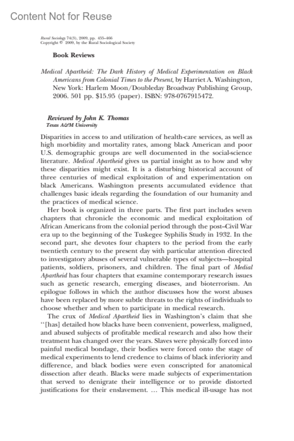 The Dark History of Medical Experimentation on Black Americans from Colonial Times to the Present, by Harriet A. Washington