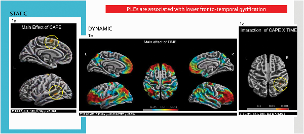 1) Adolescents with PLEs, with high CAPE scores, would show a neurodevelopmental abnormality as indexed by altered frontal and temporoparietal static cortical gyrification at baseline compared to those without PLEs.