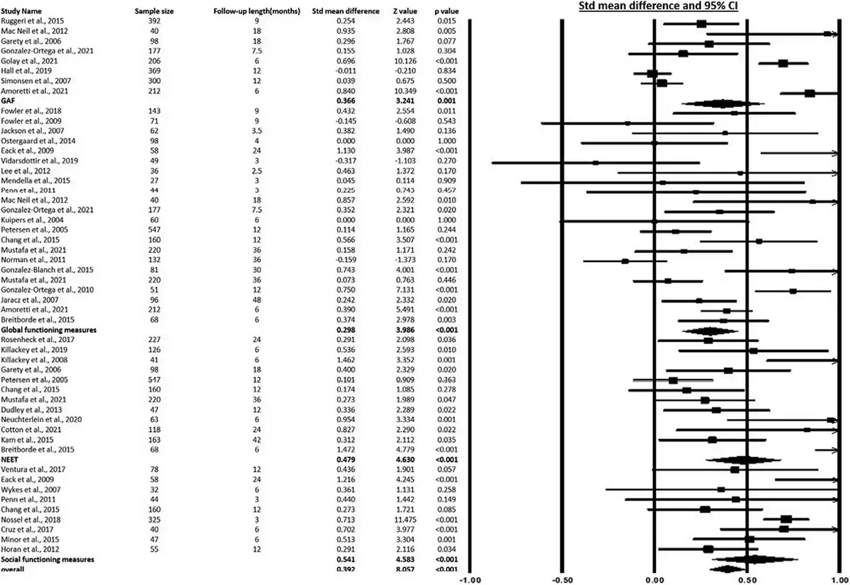 - 6. Frawley E, Cowman M, Lepage M, Donohoe G. Social and occupational recovery in early psychosis: a systematic review and meta-analysis of psychosocial interventions. Psychol Med.2021;53(5):1787–1798.