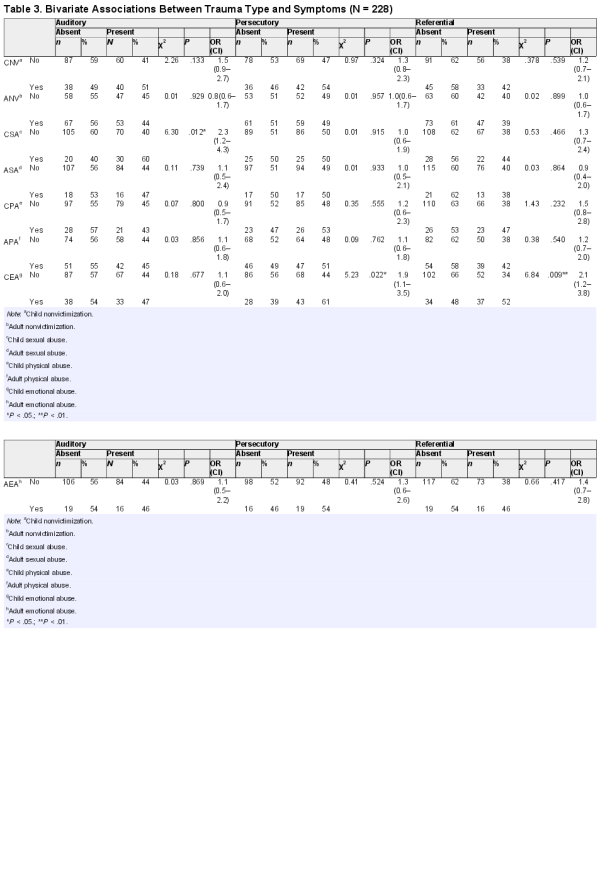 • 47. van Nierop M, Viechbauer W, Gunther N, et al. Childhood trauma is associated with a specific admixture of affective, anxiety, psychosis symptoms cutting across traditional diagnostic boundaries. Psychol Med. 2015;45:1277–1288.