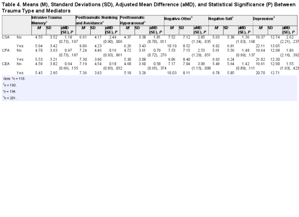 Trauma and Hypothesized Trauma-Related Mediators