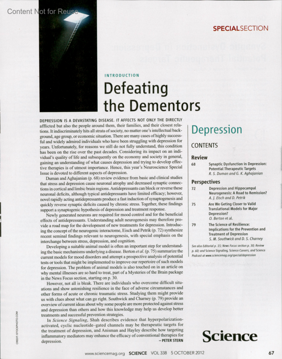 INTRODUCTION: Defeating the DementorsSTERN, PETERScience 338(6103):p 67, October 5, 2012.Copyright © 2012 by the American Association for the Advancement of Science