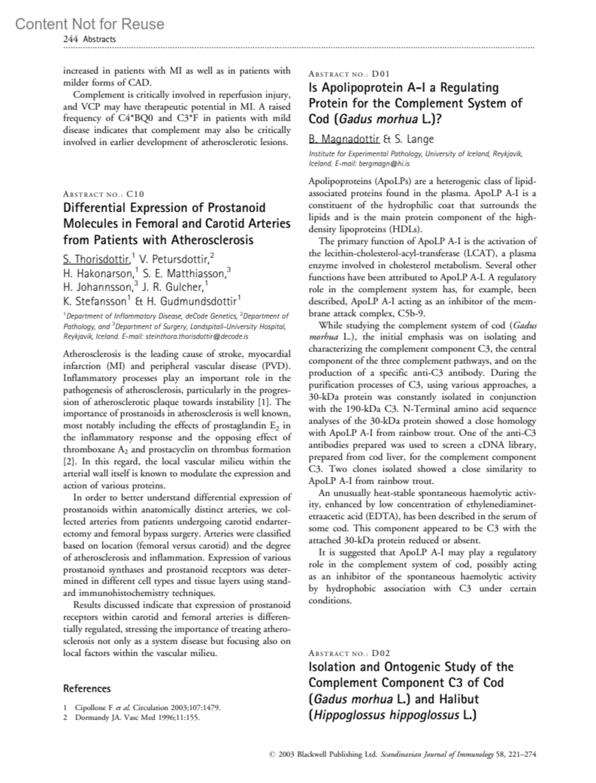 Scandinavian Journal of Immunology 58(2):p 244, August 2003.