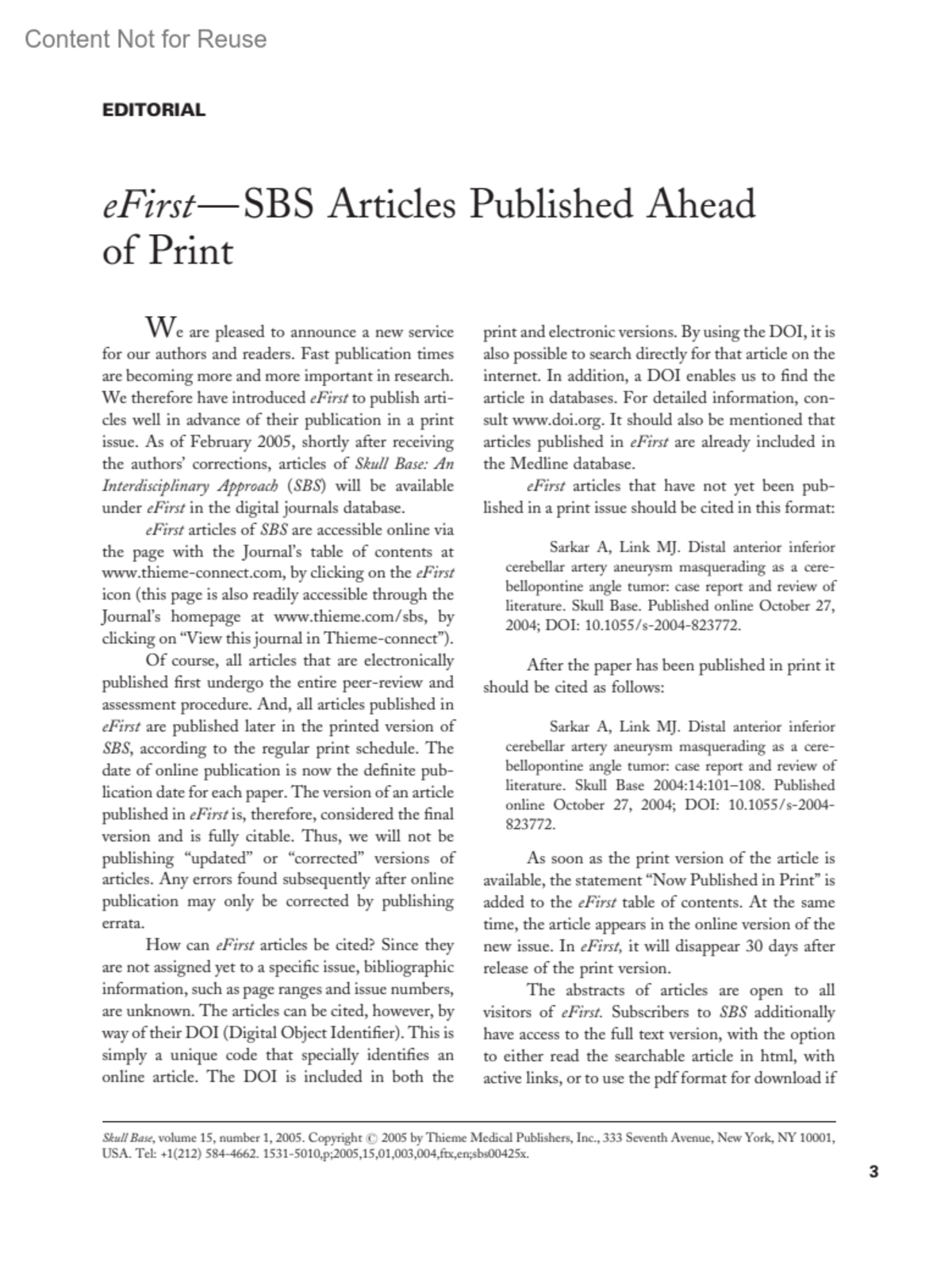 Skull Base: An Interdisciplinary Approach 15(1):p 4, February 2005.
