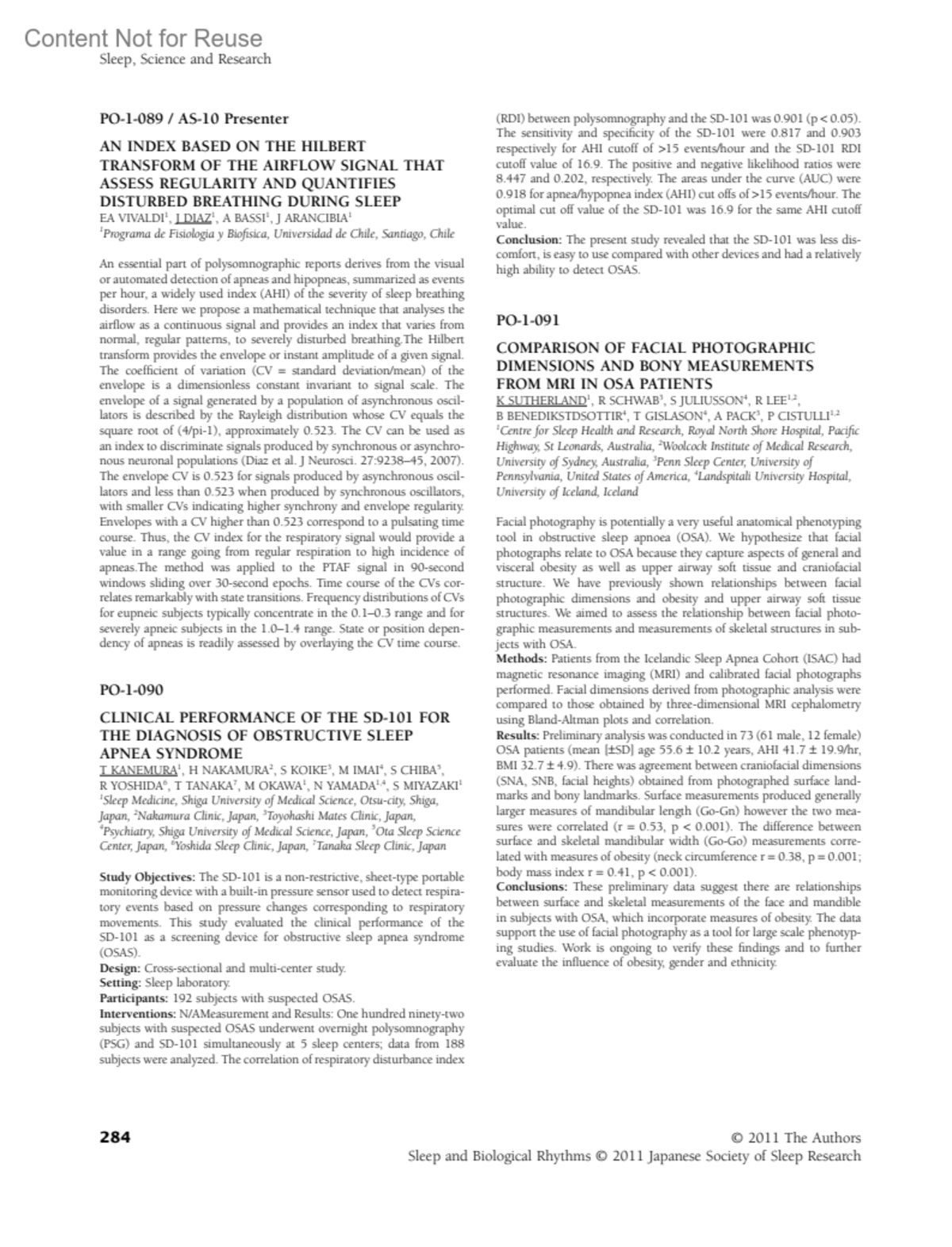 Sleep and Biological Rhythms 9(4):p 284, October 2011.