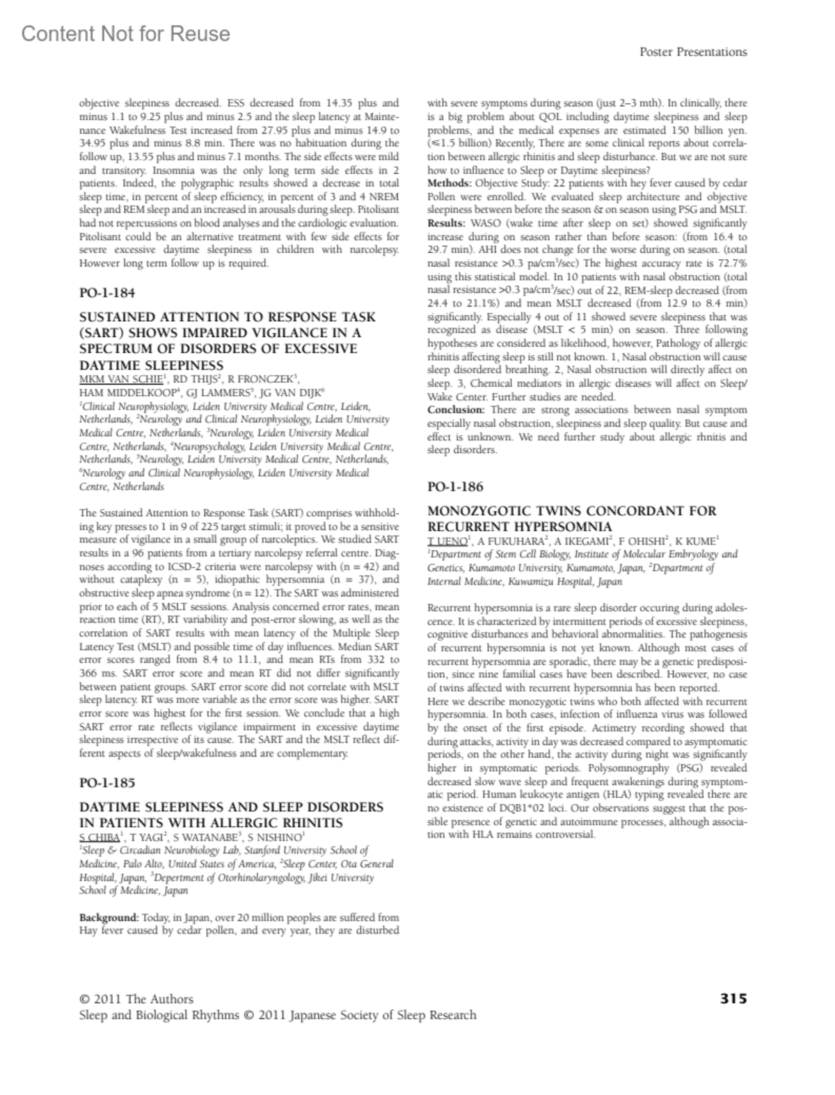 Sleep and Biological Rhythms 9(4):p 315, October 2011.