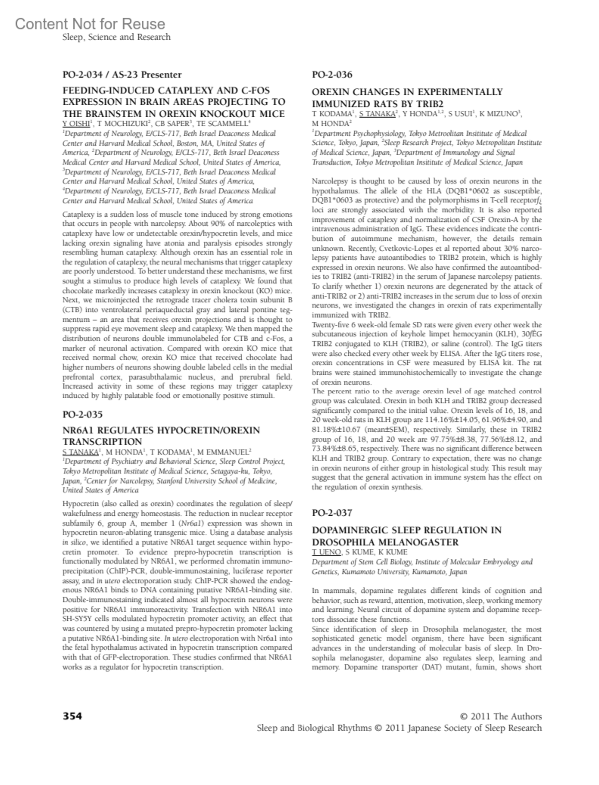 DOPAMINERGIC SLEEP REGULATION IN DROSOPHILA MELANOGASTERPO-2-037UENO, TKUME, SKUME, KAuthor informationDepartment of Stem Cell Biology, Institute of Molecular Embryology and Genetics, Kumamoto University, Kumamoto, JapanSleep and Biological Rhythms 9(4):p 354-355, October 2011.Copyright © 2011 Blackwell Publishing Ltd.
