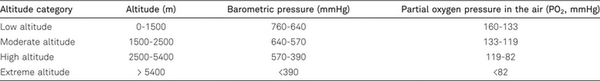 The exposure to high or extreme altitude is often associated with different environmental and behavioral challenges. The defining environmental alteration with increasing altitude is the decreasing barometric pressure and therefore a dropping partial pressure of oxygen in the air (Table 1). Increasing altitudes are also characterized by on average lower temperatures (as compared to the respective climatic region, about -6.5°C per 1000 m altitude), which can have complex effects on hypoxia adaptations []. If the altitude exposure is combined with physical challenges (e.g., during mountaineering), additional important interactions of the physiological responses to hypoxia with the increased oxygen demand especially of working muscles, respiratory and cardiovascular systems have to be expected.