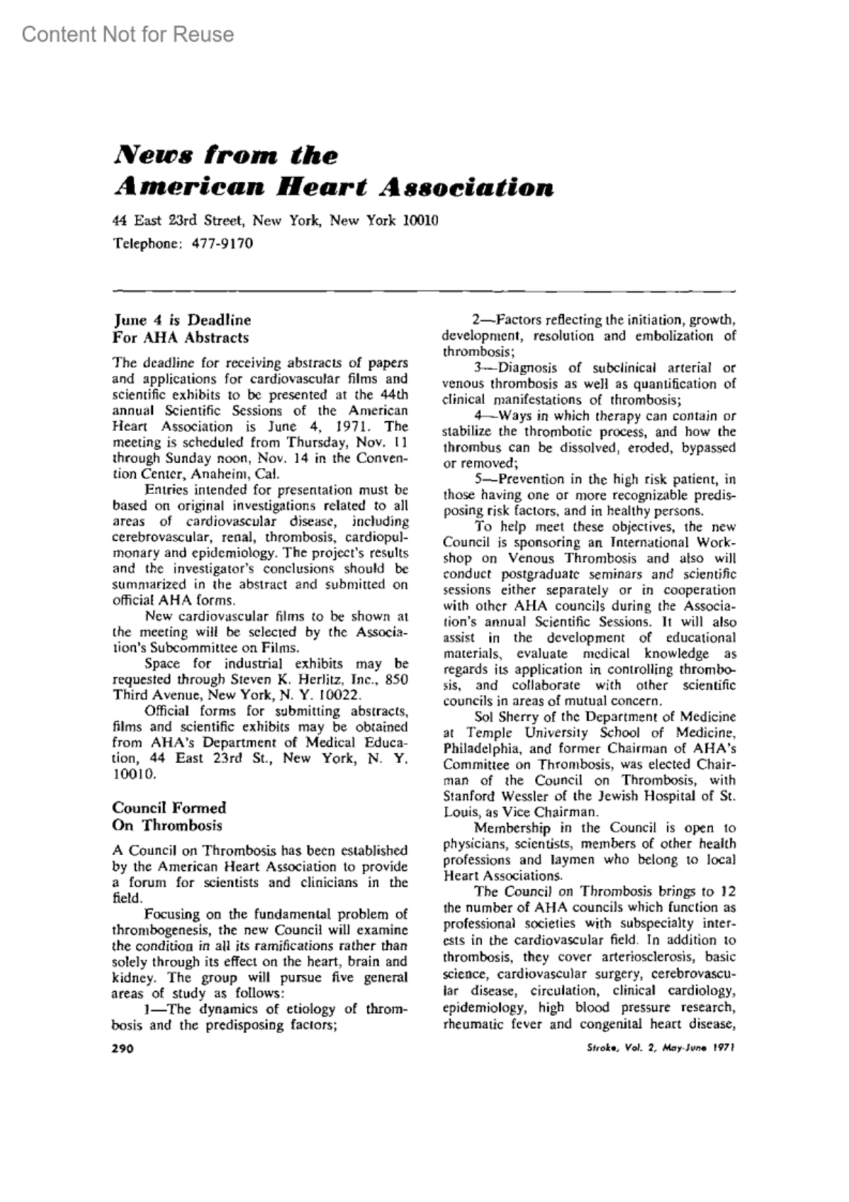 News frown the American Heart AssociationStroke 2(3):p 290-294, May-June 1971.Copyright © 1971 American Heart Association, Inc.