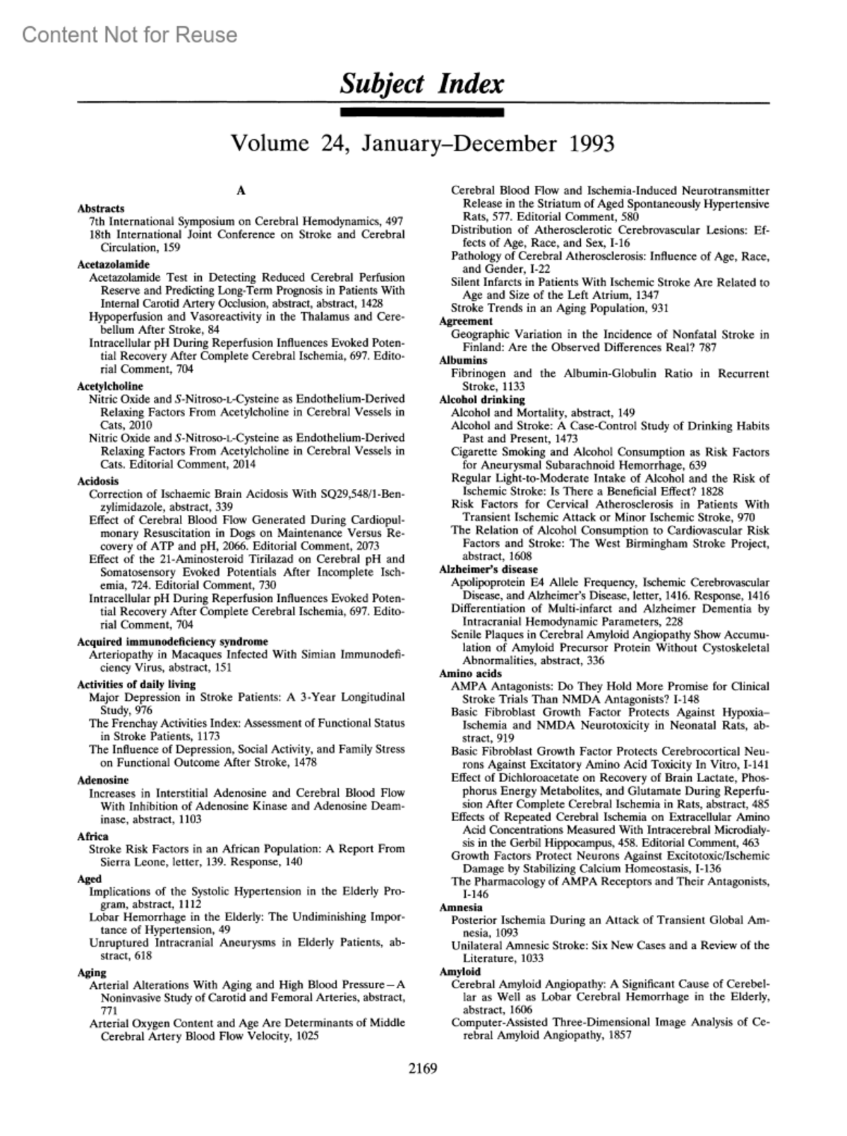 SUBJECT INDEXStroke 24(12):p 2169-2208, December 1993.Copyright © 1993 American Heart Association, Inc.