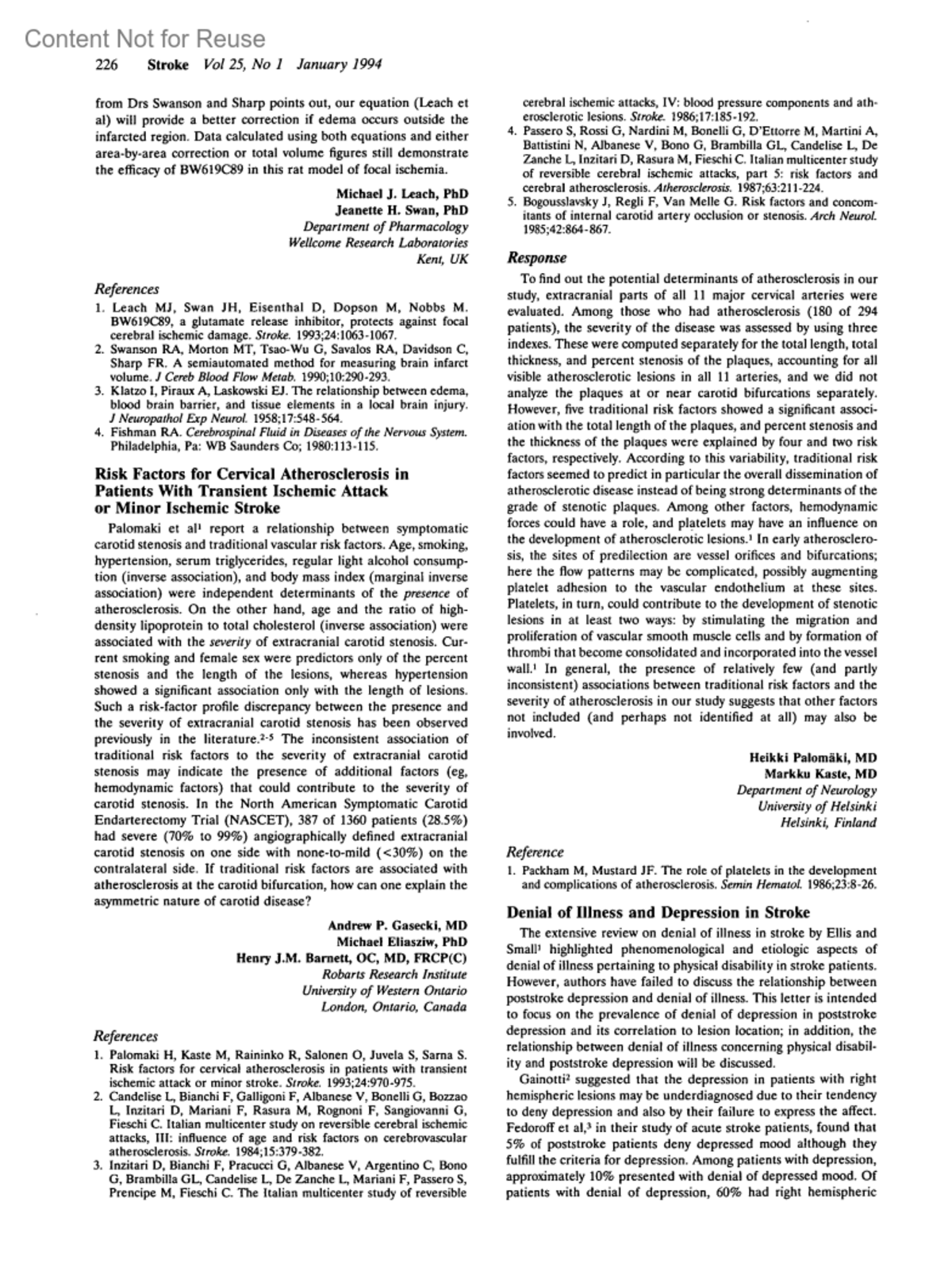 Risk Factors for Cervical Atherosclerosis in Patients With Transient Ischemic Attack or Minor Ischemic StrokePalomaki, Heikki MDKaste, Markku MDAuthor informationDepartment of Neurology, University of Helsinki, Helsinki, FinlandStroke 25(1):p 226, January 1994.Copyright © 1994 American Heart Association, Inc.