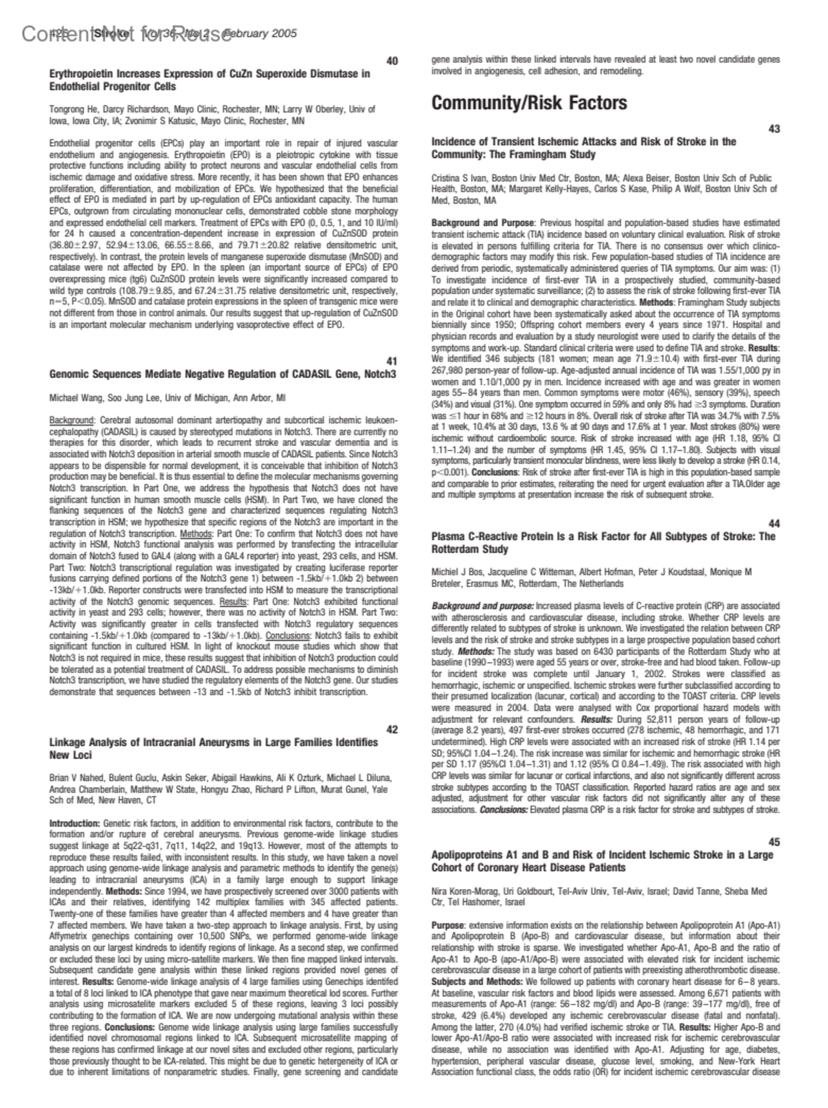 Validation of a 4-Point Prediction Rule to Stratify Short-Term Stroke Risk After TIA62Johnston, S ClaiborneSidney, StephenAuthor informationUCSF Med Ctr, San Francisco, CA; (Johnston)Kaiser Permanente DOR, Oakland, CA (Sidney)Stroke 36(2):p 430, February 2005.Copyright © 2005 American Heart Association, Inc.