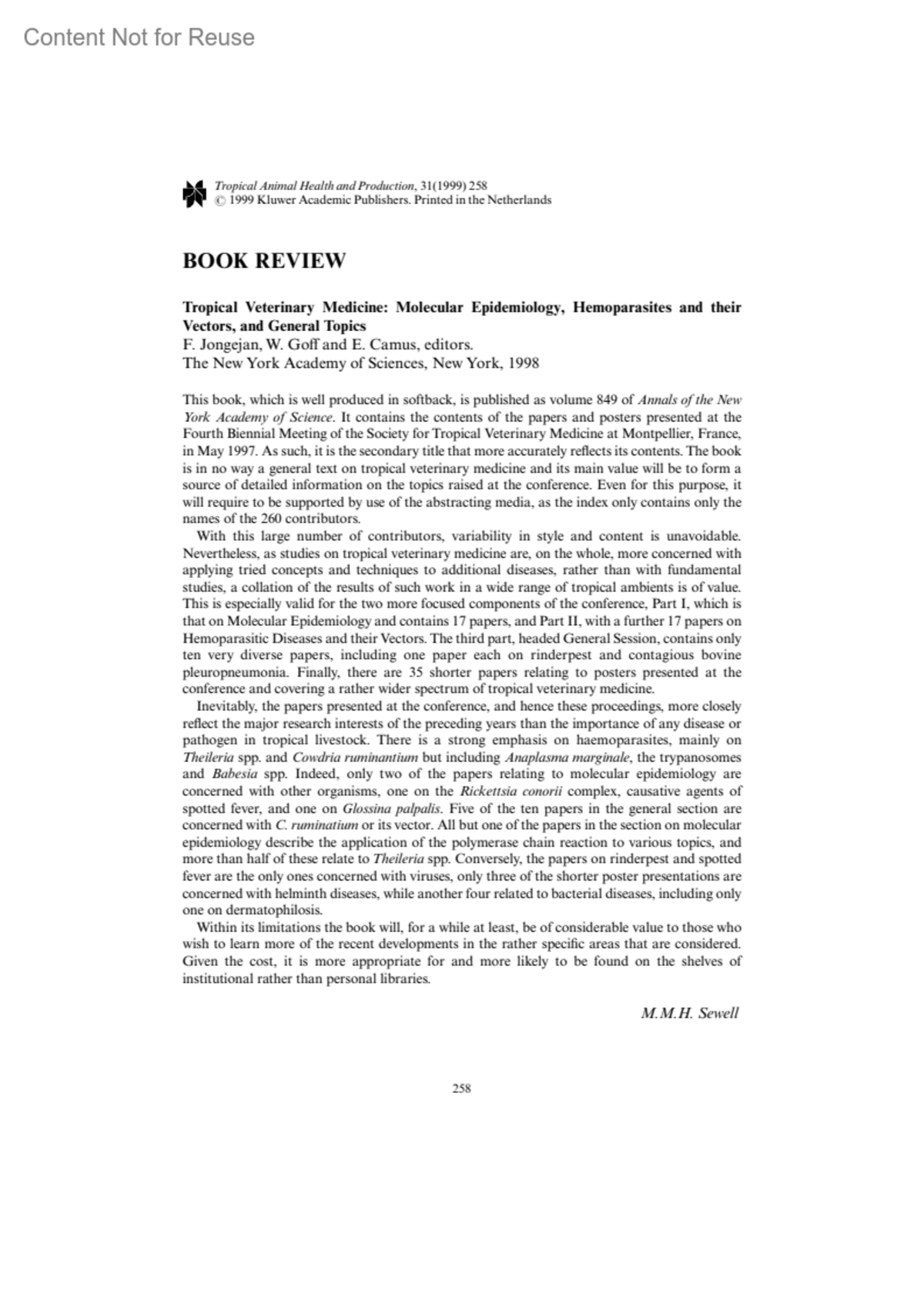Tropical Animal Health & Production 31(4):p 261-262, August 1999.