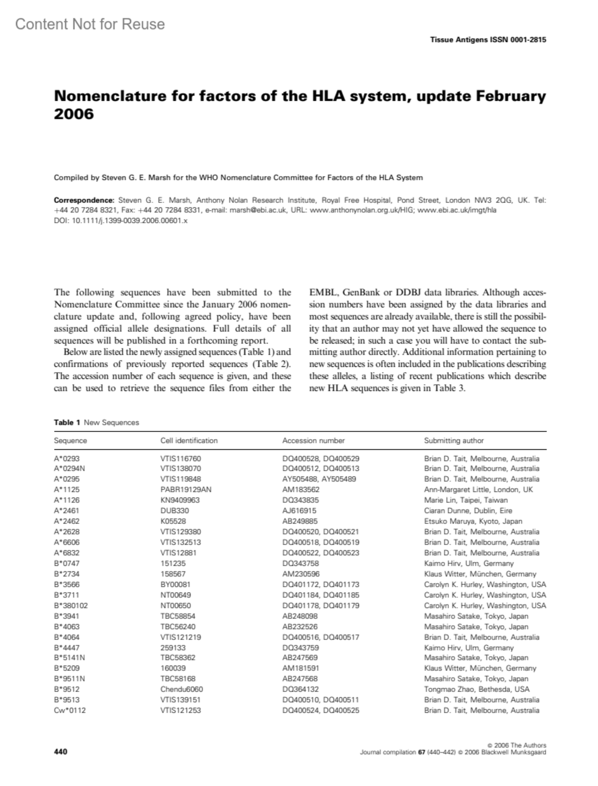Correspondence: Steven G. E. Marsh, Anthony Nolan Research Institute, Royal Free Hospital, Pond Street, London NW3 2QG, UK. Tel: +44 20 7284 8321, Fax: +44 20 7284 8331, e-mail: [email protected], URL: http://www.anthonynolan.org.uk/HIG; http://www.ebi.ac.uk/imgt/hla