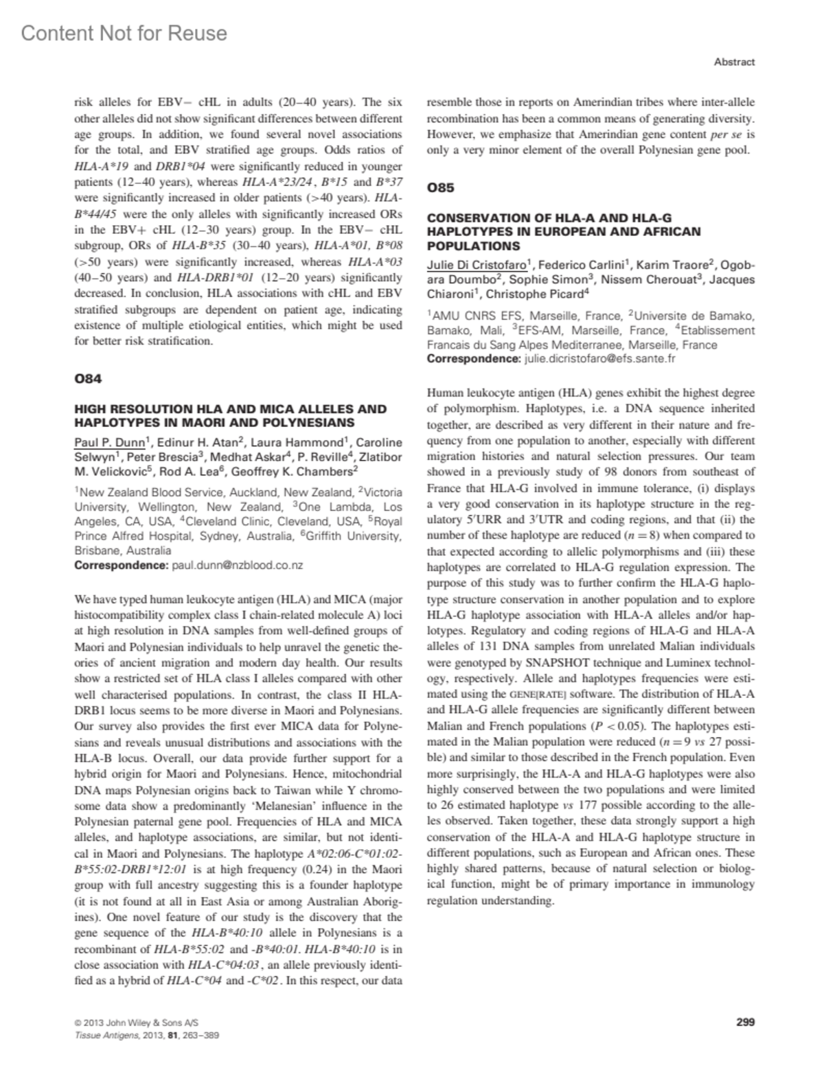 HIGH RESOLUTION HLA AND MICA ALLELES AND HAPLOTYPES IN MAORI AND POLYNESIANS
