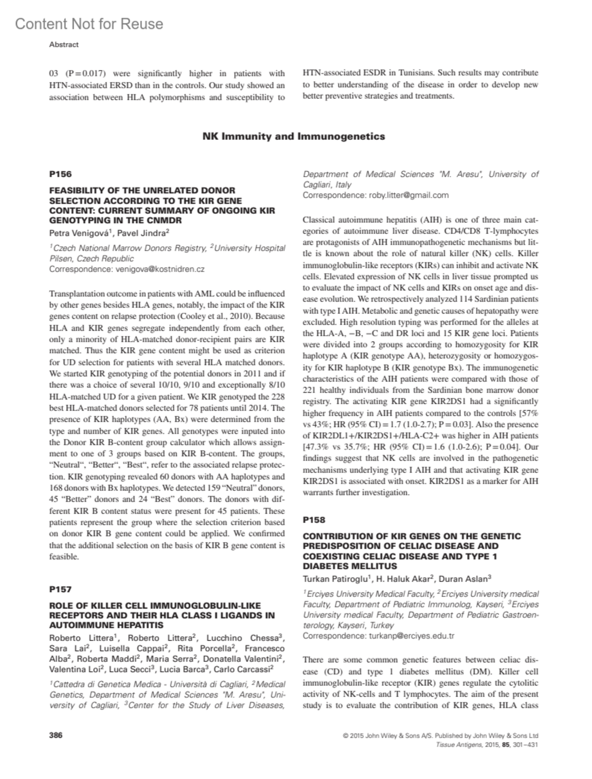Tissue Antigens 85(5):p 386-387, May 2015.