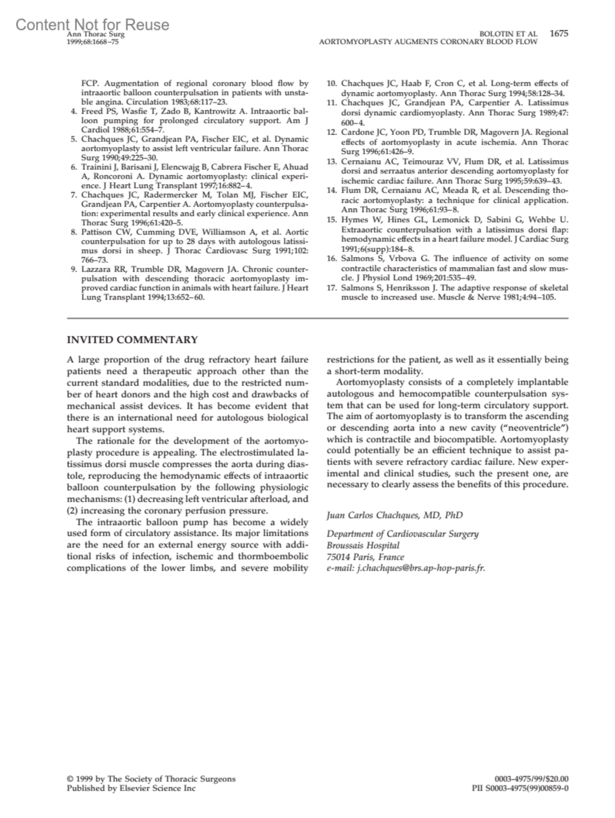 Reoperations on the ascending aorta and aortic root: pitfalls and results in 134 patientsChachques, Juan Carlos MD, PhDAuthor informationaDepartment of Cardiovascular Surgery, Broussais Hospital, 75014 Paris, FranceThe Annals of Thoracic Surgery 68(5):p 1675, November 1999.Copyright © 1999Elsevier, Inc.