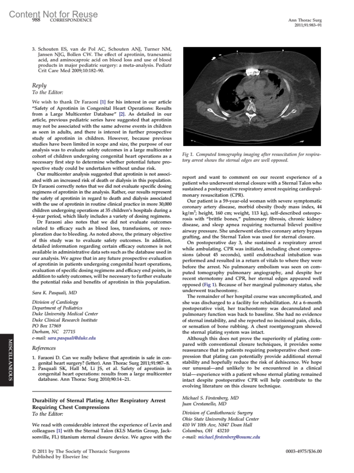 The Annals of Thoracic Surgery 91(3):p 988, March 2011.