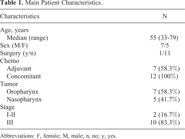 Twelve patients (median age: 55 years; range: 33-79) previously treated with IGRT at our institute were selected for this study; at the time of treatment, all patients signed an informed consent form including the use of imaging information. All patients were treated with a simultaneous integrated boost approach, delivering 54 Gy to the elective lymph nodes, 61.5/66 Gy to the tumor bed/tumor, and 69 Gy to the PET-positive volume. Seven oropharynx and 5 nasopharynx cases were considered; for 7 patients, the tumor was bilateral, whereas for 5, it was unilateral. Table 1 summarizes the main characteristics of the considered patients.