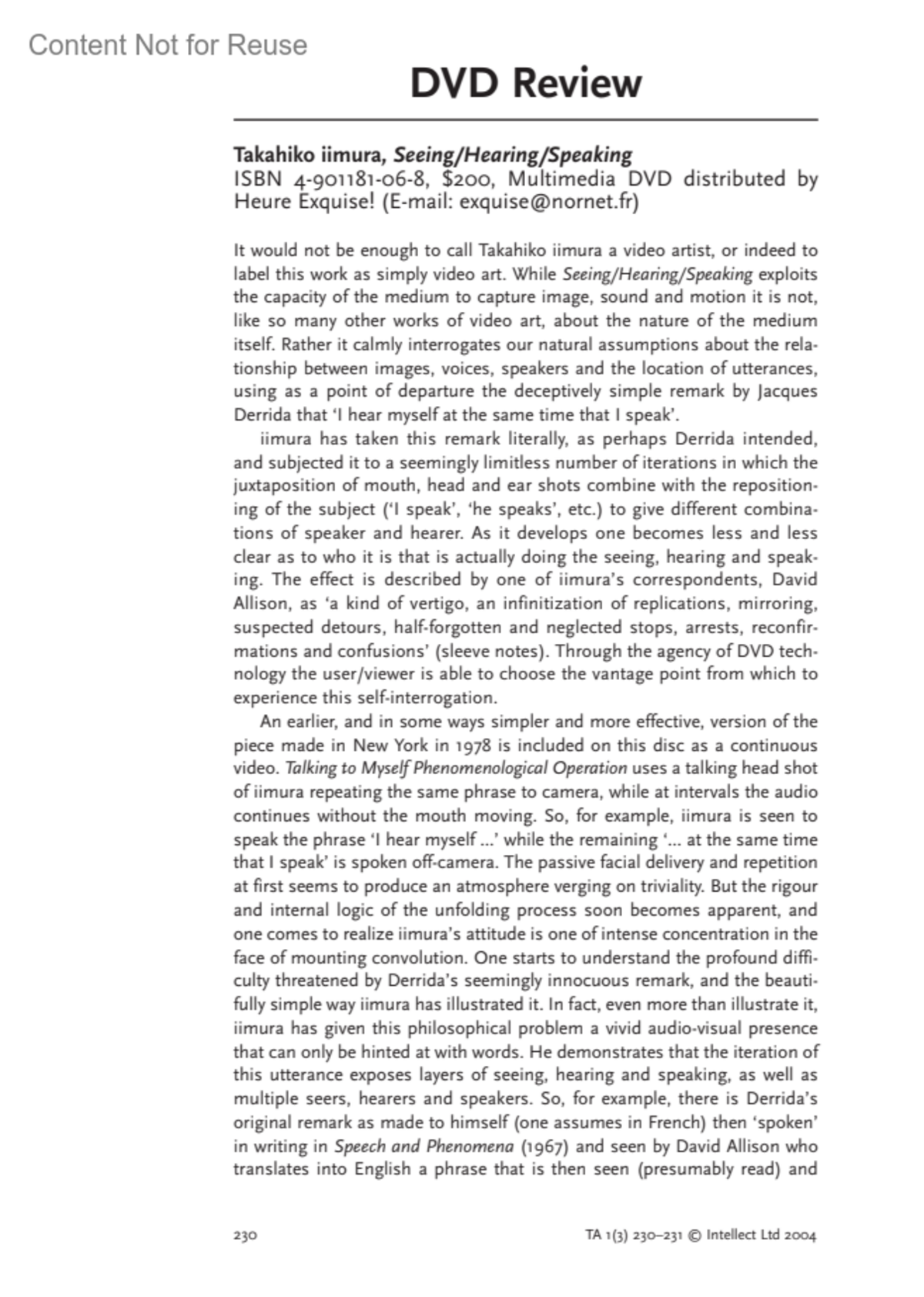 Technoetic Arts: A Journal of Speculative Research 1(3):p 230-231, December 2003.