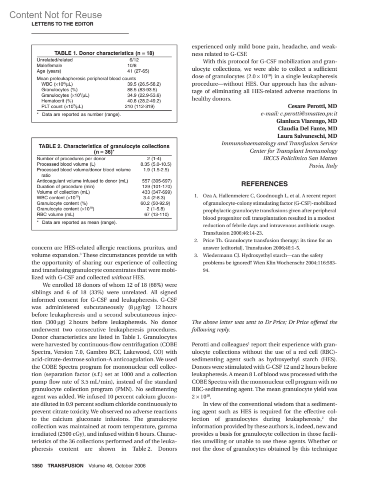 An alternative strategy for collecting granulocytes without sedimenting agentsPrice, Thomas H. MDAuthor informationPuget Sound Blood CenterSeattle, WashingtonTransfusion 46(10):p 1850-1851, October 2006.Copyright © 2006 Blackwell Publishing Ltd.