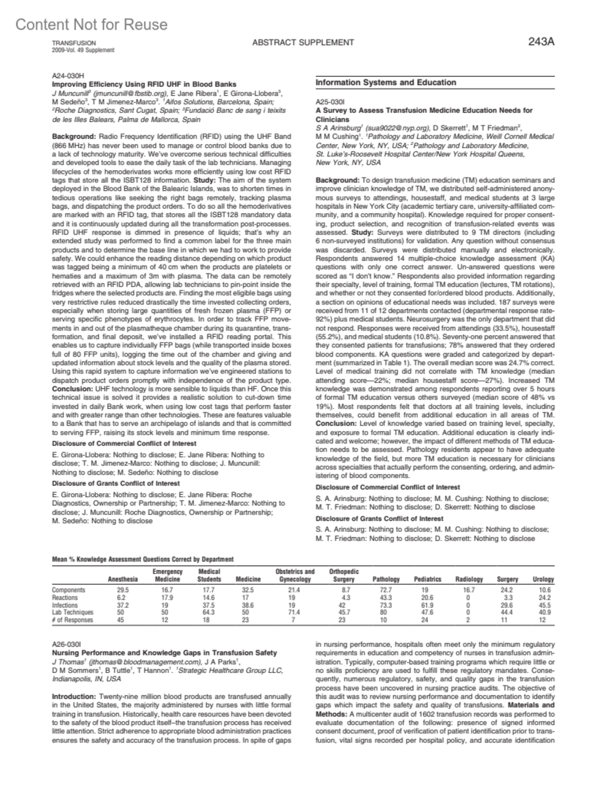 A Survey to Assess Transfusion Medicine Education Needs for Clinicians